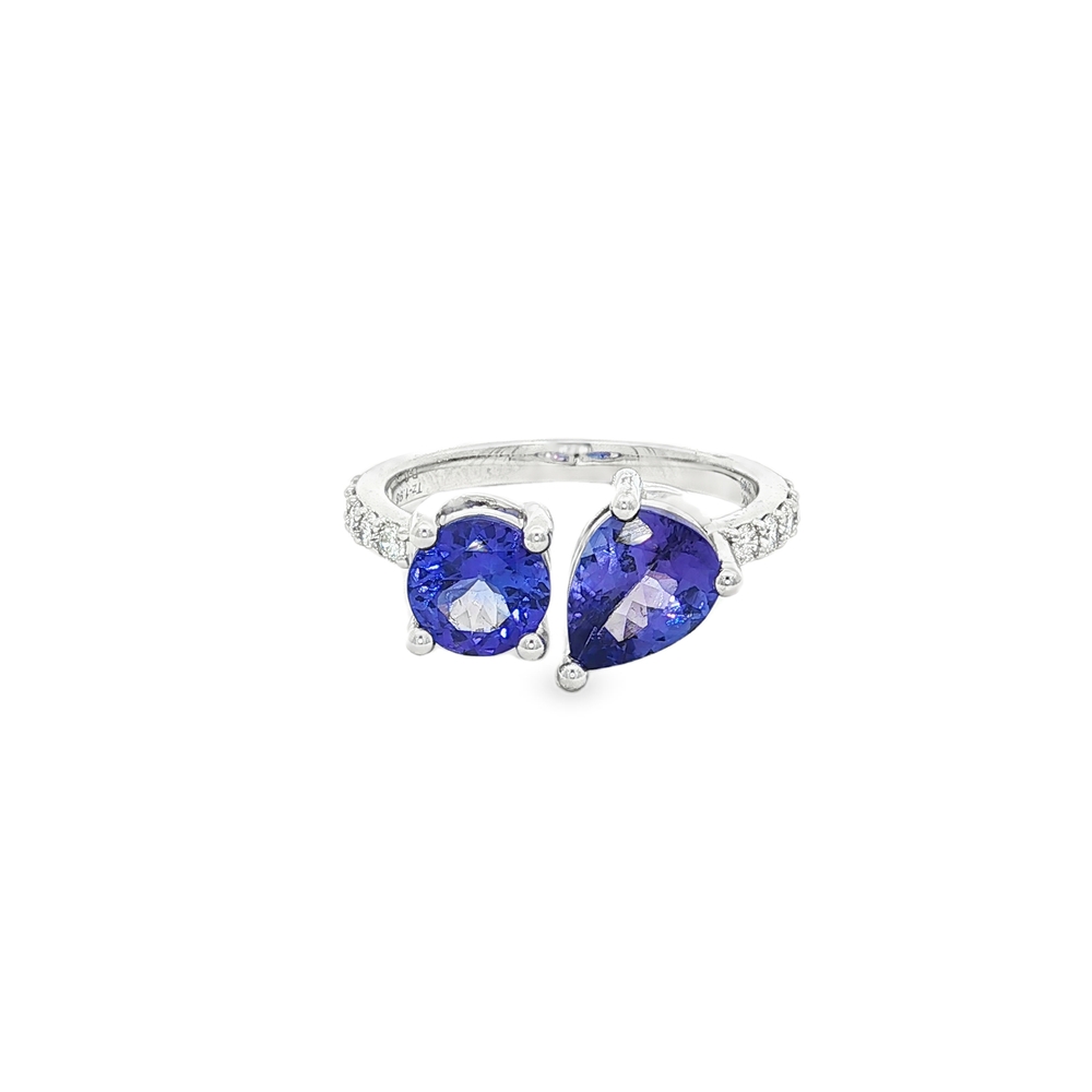 1.34 carats Intense bV / Violet Pear shaped Tanzanite Ring