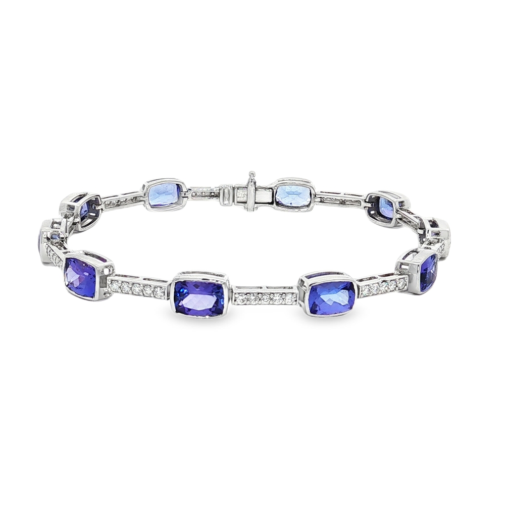 8.43 carats Intense vB / Blue Cushion shaped Tanzanite Bracelet Tennis